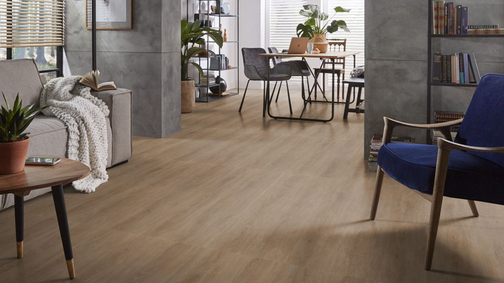 - De vloer heeft een natuurgetrouwe structuur die exact de houtprint volgt en een subtiele V-groef.